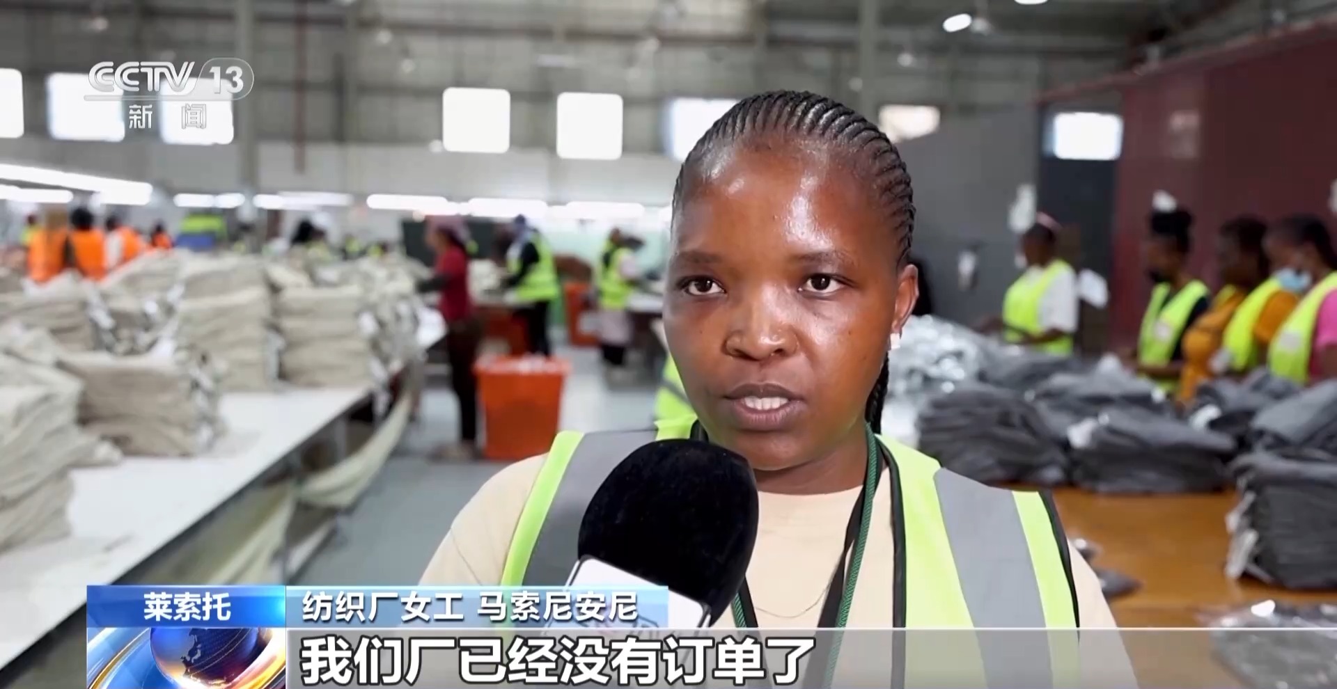 纺织厂女工 马索尼安尼:因为美方高额关税,我们厂已经没有订单了。这些关税的上涨在经济和社会层面,都对我们造成了非常严重的冲击。我们非常担心,也非常沮丧,因为我们不知道,自己是在前进,还是在倒退。